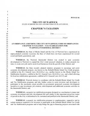 By John Howell Sometimes all it takes is a little extra boost to get across the goal line. Michael D’Ambra believes the action the City Council took Monday night could be just what’s needed to bring a Hyatt Hotel to Warwick City Centre. The hotel would be the first step to a multi-use development D’Ambra proposed for eight acres on Jefferson Boulevard more than seven years ago. But then the economy took a nosedive, and the proposal for 540,000 square feet of office and retail space and a hotel never went any further than gaining the required city approvals. It’s not that D’Ambra, the president of D’Ambra Construction, hasn’t tried to find prospective tenants or prepared for the day when work would begin. The asphalt plant once located on the site has been relocated to Johnston, although offices for the company that specializes in sewer and road construction is still on the site adjacent to the Interlink and the commuter rail station. It’s on that northerly end of the property where D’Ambra plans to build a 120-room hotel with a skywalk connecting it to the Interlink and Green Airport. The boost that quite possibly will take the project from the drawing boards to financing and construction is the tax stabilization agreement (TSA) unanimously approved by the City Council. Under the agreement applying to the 111 acres of the City Centre intermodal zone, new developments of $5 million or more would have the increased appraisals of the property phased in over 15 years. During the first five years the “base” appraisal of the property as set before new construction would be locked in. Over the next 10 years, the new and higher value of the property would be phased in at the rate of 10 percent a year. Under the current commercial tax rate, the TSA would generate a tax savings to the property owner of almost $1.5 million for each $5 million of new development over 15 years. TSAs would be approved by the city tax assessor and would apply to new development only. “It’s certainly going to make it easier,” D’Ambra said when asked what the TSA could mean for him. In addition to the hotel, which would have a swimming pool and meeting rooms but not a full service restaurant, D’Ambra hopes to start construction on the first office building. He put the value of this phase of construction at $20 million. Also in the audience to witness the council’s historic action – this is the first tax credit the city has offered to attract new development – was Joseph Piscopio. Piscopio acquired the former Malleable Iron Works building at the intersection of Jefferson Boulevard and Coronado Street, where he developed the Hilton Garden Inns and later the Iron Works Tavern. He has had plans for additional developments on the property as well as other land he owns in the intermodal zone. “Anything is a help,” he said of the TSA. Piscopio pointed out that private development within City Centre has been a long time coming. Those were practically the same words City Planner William DePasquale used in describing the need for a TSA. DePasquale pointed to the investment the state and Rhode Island Airport Corporation have put into the area, and how with federal funding changes are being made that put in place the infrastructure for redevelopment to occur. He also talked about the new generation of millennials, people aged 20 to 40, and how they gravitate to an environment where they are within walking distance of transportation and amenities. He called the intermodal zone, infrastructure investments and the TSA “a recipe for redevelopment.” That’s just what Councilmen Steve Merolla (D-Ward 9) and Joseph Solomon (D-Ward 4) want to hear. Merolla advanced the concept last August after learning of state legislation aimed at stimulating development of the Route 195 parcel in Providence. The city administration picked up on the idea, with DePasquale and the planning department researching how a City Centre TSA might dovetail with the state plan to generate even more incentives for new development. One benefit DePasquale found is that the city could be eligible to receive a 10 percent rebate of the tax benefits given developers. “That would be a pretty good deal,” he told the council. DePasquale also addressed a commonly asked question since the TSA was proposed – why the tax credit could not be universally applied to new city development. He pointed out that redevelopment, which this would be, is inherently more costly than “green field” development. Added costs include land assembly – as acquisition of several sites is needed for a major development – as well as demolition and, frequently, environmental cleanup. Also, since development is in a confined area, structured parking is often required, which pushes up costs. DePasquale is also looking to create a sense of urgency about City Centre development. To do that, he built in a five-year sunset provision for a TSA application. “We want to spur and catalyze development,” he said. Merolla noted intermodal zoning has been in place since 1998, yet little has happened in the form of private development. “This needs a kick start,” he said. “I docketed this last fall. Let’s get this off the ground.” Merolla had issue with the provision in the legislation that a landowner would forfeit the TSA if they had failed to pay taxes within 60 days. He observed property could be going through an owner transition or that the payment had been overlooked for other reasons. “That is kind of harsh punishment,” he said, suggesting as city legislation provides that landowners get “one bite of the apple” to have penalties and interest costs waived on late payments. The TSA was amended to reflect his suggestion. The council also approved Solomon’s recommendation to extend the sunset provision from five to 10 years. http://warwickonline.com/stories/city-approves-tax-break-for-new-develop... Draft Legislation (Prior to Counci
